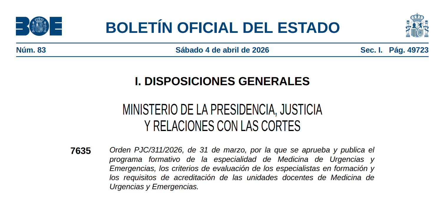 La reciente publicación en el Boletín Oficial del Estado del programa formativo de la especialidad de Medicina de Urgencias y Emergencias (MUYE) marca un hito histórico en la consolidación definitiva de esta disciplina dentro del sistema sanitario español.